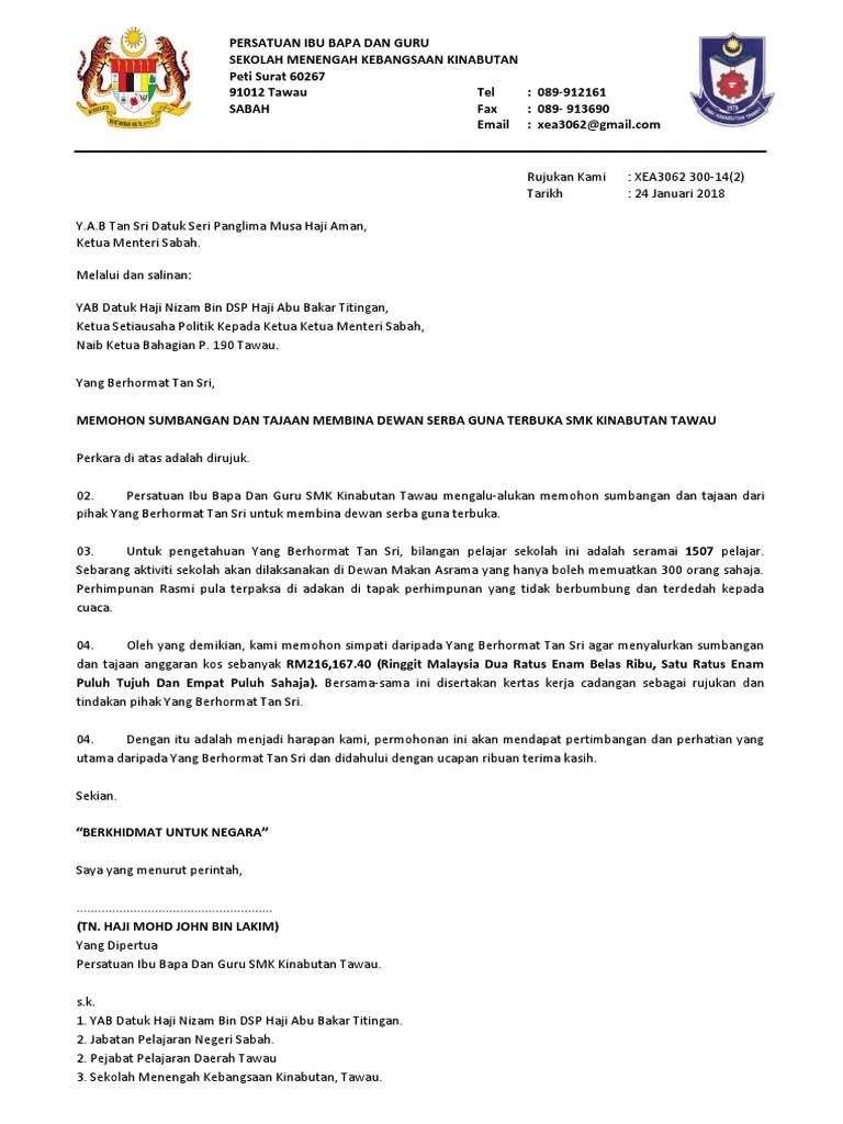 Contoh surat rasmi kepada ketua menteri sabah kini, contoh surat rasmi kepada ketua menteri sabah pertama, contoh surat rasmi kepada ketua .